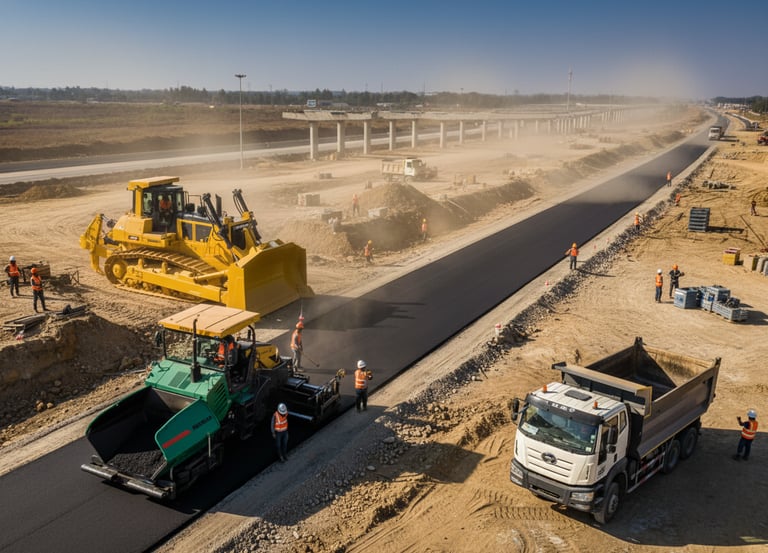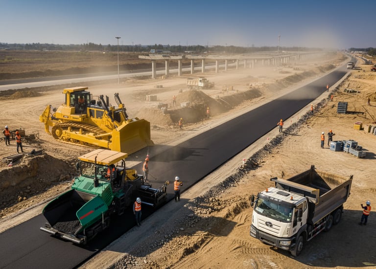 آليات الطرق الثقيلة بجودة عالية وجاهزية تامة للعمل في مشاريع الطرق،